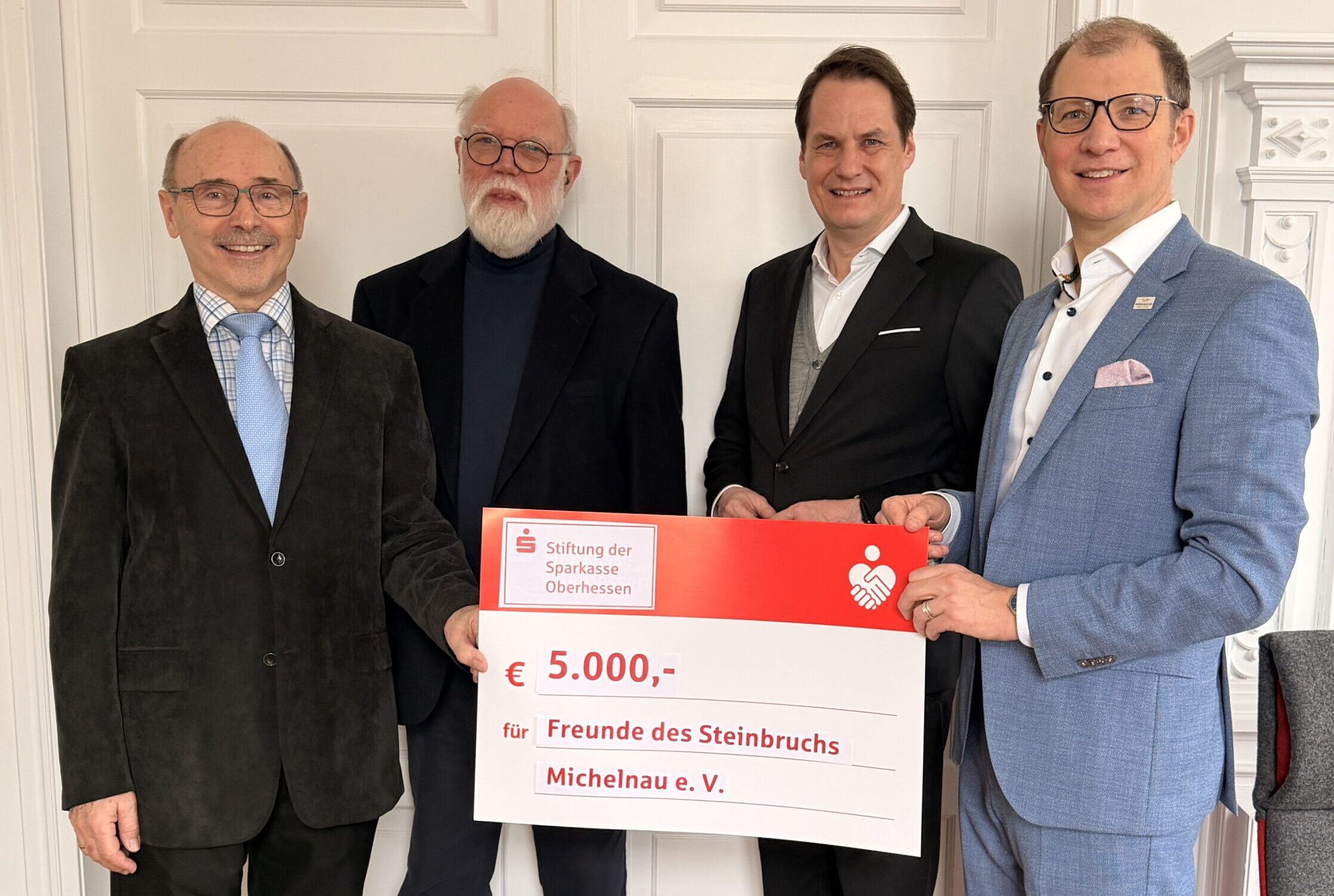 Ulrich Kaßburg, Vorsitzender des Vorstands der Sparkasse Oberhessen, betonte bei der Übergabe: „Die Stiftung der Sparkasse Oberhessen steht seit jeher für die Förderung von Projekten, die unsere Region stärken und deren kulturelle und historische Bedeutung erhalten. Es ist uns eine Freude, den ‚Freunden des Steinbruchs Michelnau‘ mit diesem Geld zu helfen. So bleibt der Steinbruch auch für künftige Generationen erlebbar.“